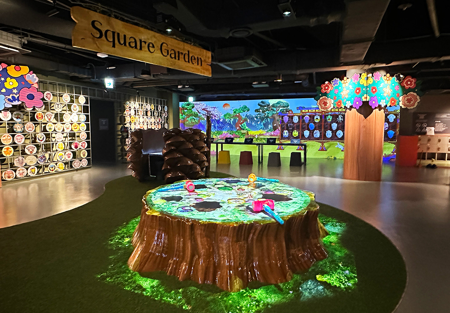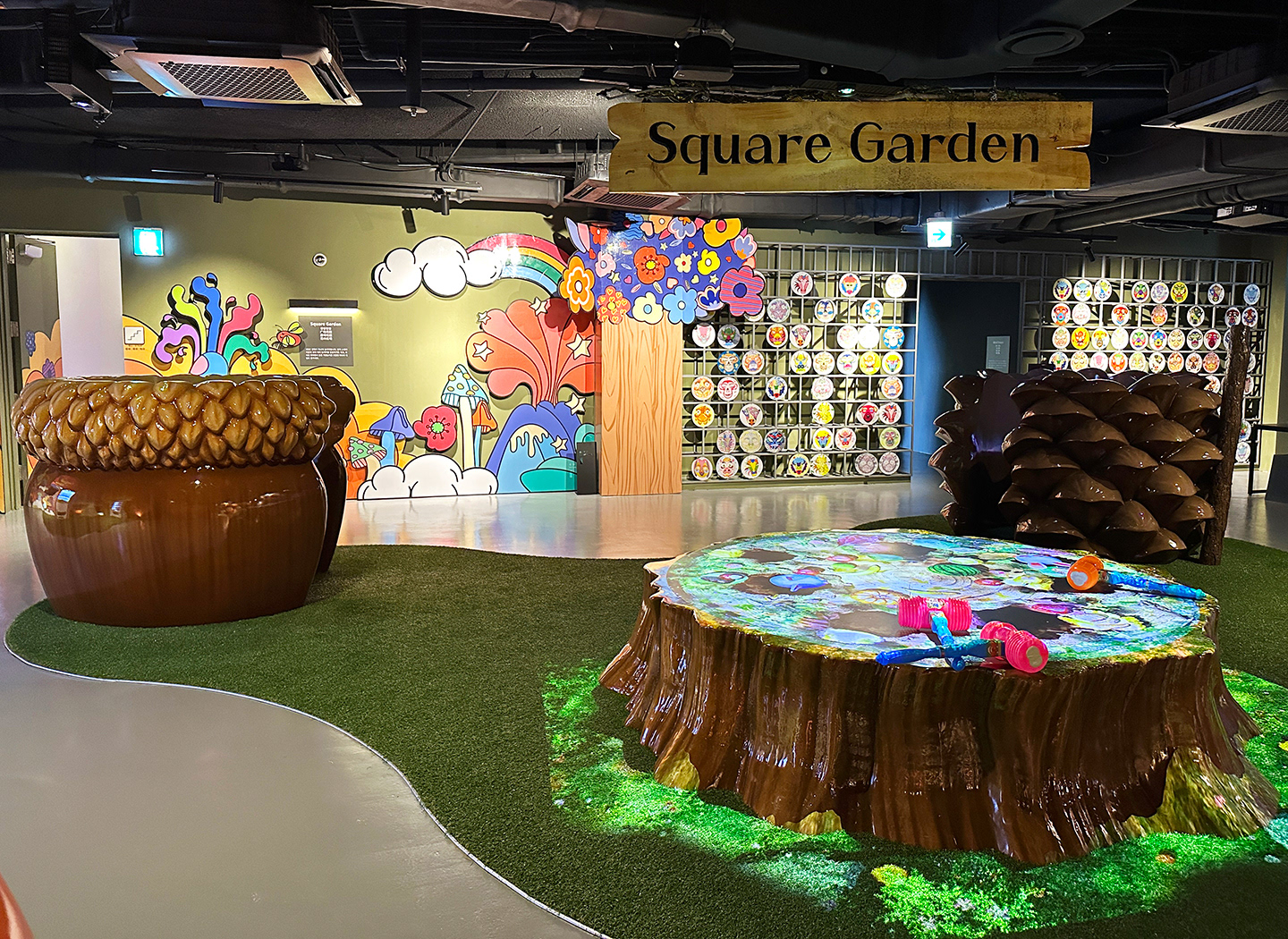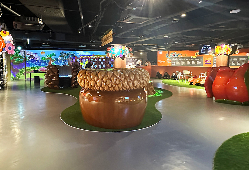제주 원더랜드 조형물 : 그루터기 테이블, 대형 도토리, 대형 솔방울, 대형 동백꽃