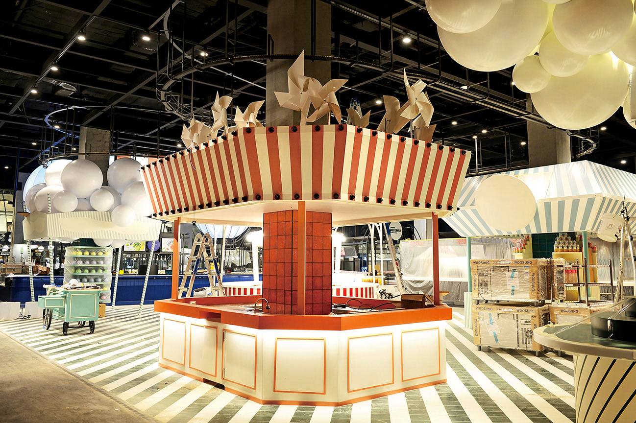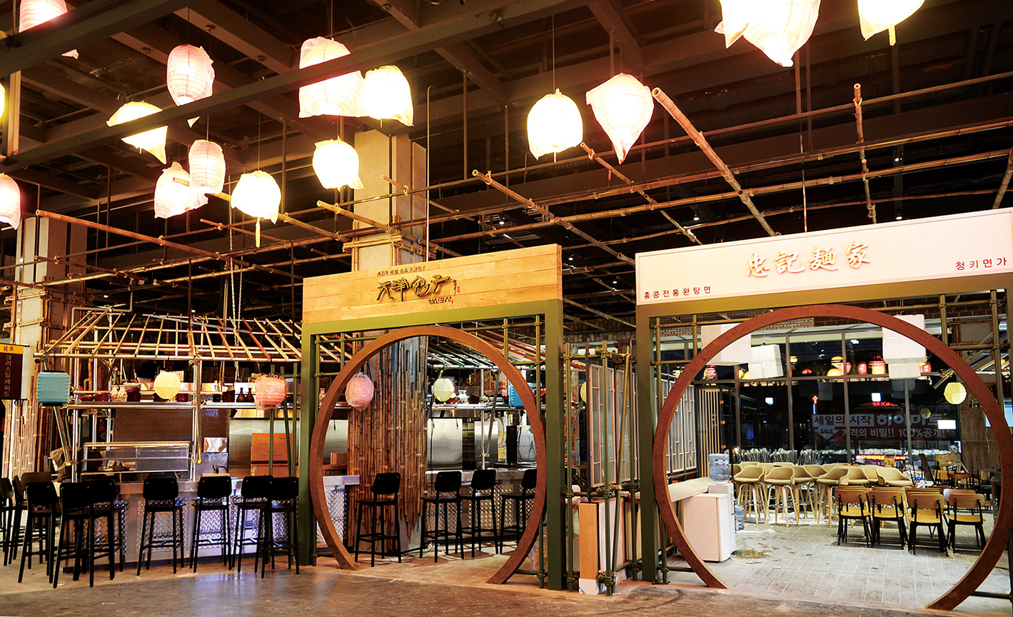 스타필드 지상 3층 푸드코트 E/V홀 벽면 및 MD독립매대